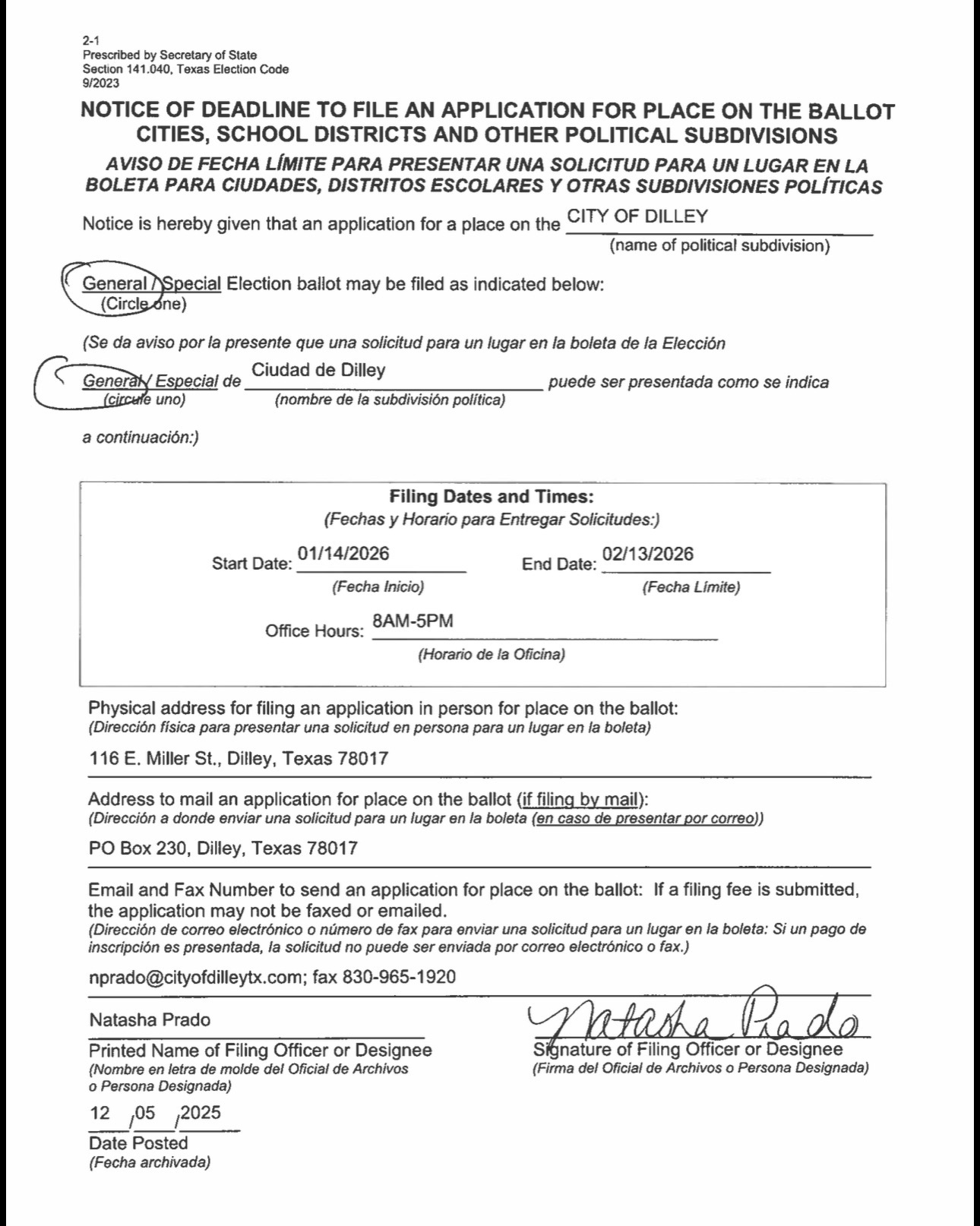2026 - Notice of Deadline to File an Application for Place on the Ballot